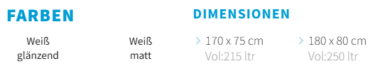 Ergonomisch gestaltete moderne rechteckige Badewannen mit integriertem Sockel und Überlauf-Ablaufgarnitur, vorgesehen für den Einbau durch Einmauern. Erhältlich in zwei verschiedenen Größen.