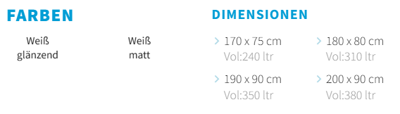 Elegante und moderne rechteckige Badewannen mit integriertem Sockel und Überlauf-Ablaufgarnitur, vorgesehen für den Einbau durch Einmauern. Erhältlich in einer breiten Auswahl an Größen.